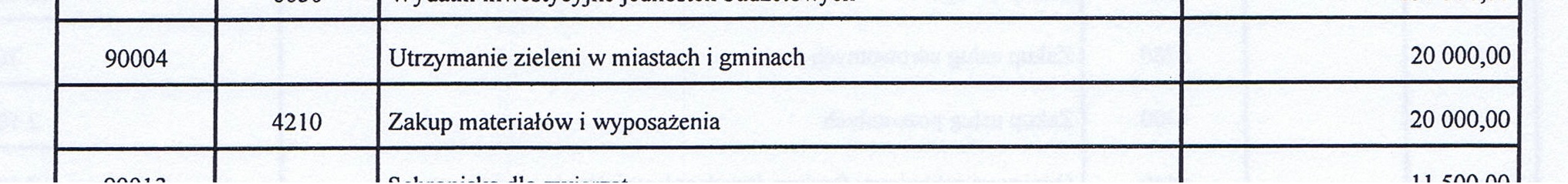 Powyższy fragment załącznika nr 2 do uchwały Rady Miasta nr XXXIX/258/13 z 30 grudnia 2013 r. wskazuje, że na utrzymanie zieleni miejskiej przeznaczono w budżecie na 2014 kwotę 20 tys. zł rocznie.