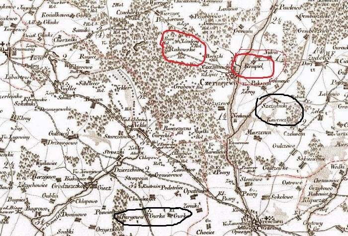 2. Szczytniki dzieliły się na Czerniejewskie i Dwór (folwark) (podobnie jak Czerniejewo na miasto, wieś i pałac) i mapa tego nie wykazuje.